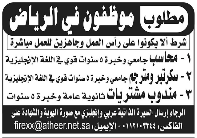 الوظائف الشاغرة واعلانات الصحف المتاحة للمقيمين في السعودية بتاريخ 27/10/2020